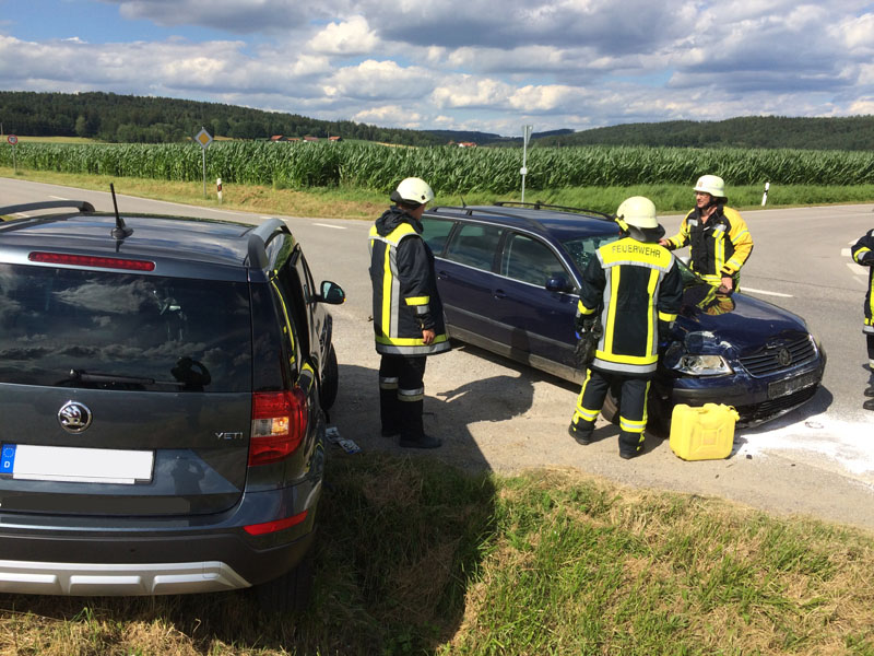 13:10 Uhr Verkehrsunfall, St2148, Kirchroth Zu einem Verkehrsunfall auf die St 2148 bei der Abzweigung nach Kirchroth unmittelbar beim Feuerwehrhaus wurden wir angefordert. Unser Kommandant war zum Unfallzeitpunkt im Gerätehaus und hat nach einer kurzen Erkundung sofort mit der Verkehrsabsicherung begonnen sowie eine Alarmierung bei der ILS angefordert. An dem Unfall waren zwei PKWs beteiligt, die Fahrer waren beide nur leicht verletzt worden. An der Einsatzstelle wurde die Verkehrsabsicherung übernommen.