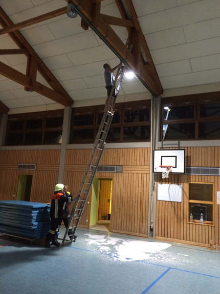 21:46 Uhr Brand Flutlichtstrahler, Schule Kirchroth Zu einem Brand eines Flutlichtstrahlers wurden wir zur Turnhalle der Grund- und Mittelschule alarmiert. Der Strahler hat während des Betriebs plötzlich Feuer gefangen. Der Brand konnte bis zu unserem Eintreffen bereits mit mehreren Feuerlöschern abgelöscht werden. Der Betroffene Strahler wurde noch mit der Wärmebildkamera überprüft.