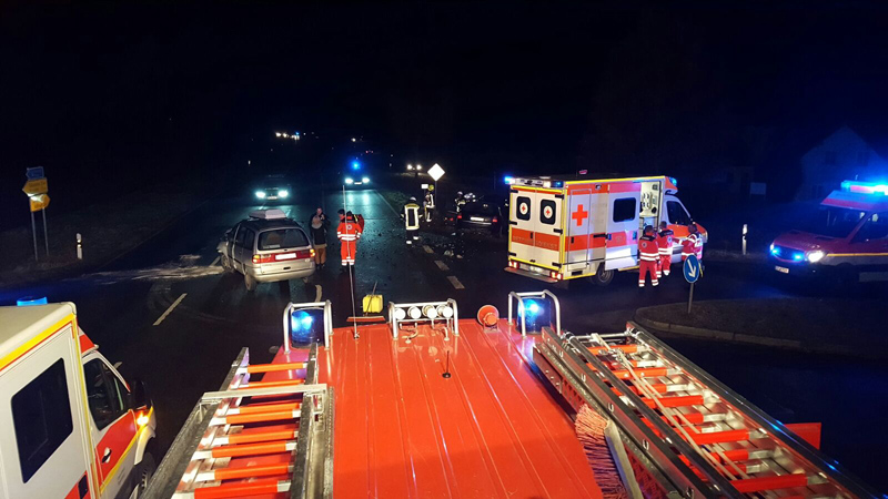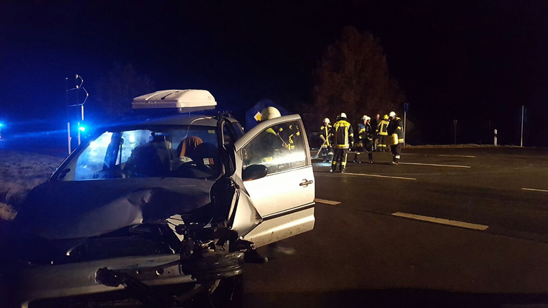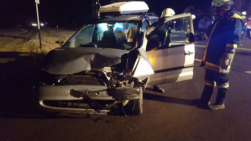 01:26 Uhr VU mit eingeklemmter Person, Kirchroth Verkehrsunfall mit eingeklemmter Person lautete das Alarmstichwort, mit dem wir heute zusammen mit den Wehren aus Aufroth und Parkstetten auf die St2148 Höhe Kirchroth gerufen wurden. Ein Kleintransporter war aus Kirchroth kommen in die Staatsstraße eingebogen und hat dabei ein Vorfahrtberechtigtes Taxi übersehen. Die Fahrerin wurde in ihrem Fahrzeug eingeschlossen, die Tür konnte aber nicht geöffnet werden, da dort das Fahrzeug des Unfallgegners stand. Um eine schonende Rettung zu ermöglichen, wurde durch die Feuerwehren Kirchroth und Parkstetten mit schwerem hydraulischem Rettungsgerät das Dach des Fahrzeugs entfernt. Der Verkehr musste während der Rettungsmaßnahmen komplett gesperrt werden.