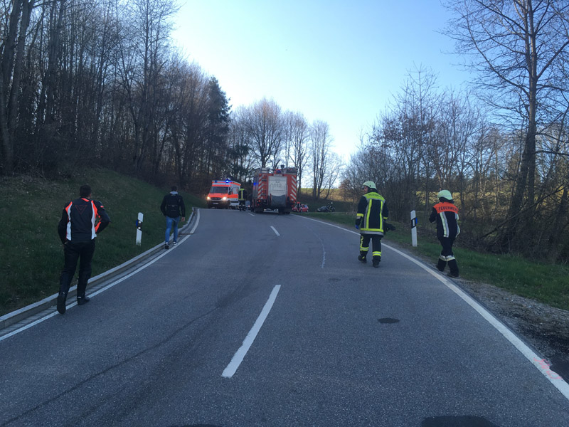 17:39 Uhr Verkehrsunfall mit Motorrad, Kellerberg Die Feuerwehr Kirchroth wurde zu einem Verkehrsunfall mit einem Motorradfahrer zum Kellerberg gerufen. Dort war ein Motorradfahrer mit Sozius alleinbeteiligt in einer scharfen Kurve gestürzt. Die vor uns bereits eingetroffene Unterstützungsgruppe Rettungsdienst hat sich bereits um den Motorradfahrer gekümmert, durch die Feuerwehr wurde die Straße vorübergehend für den Verkehr gesperrt und die Betreuung des Sozius bis zur Übernahme durch den Rettungsdienst übernommen.