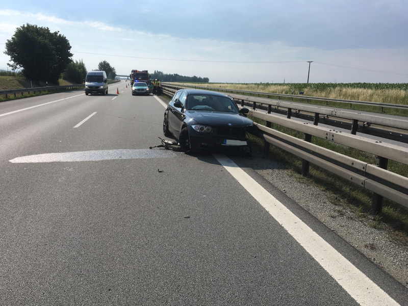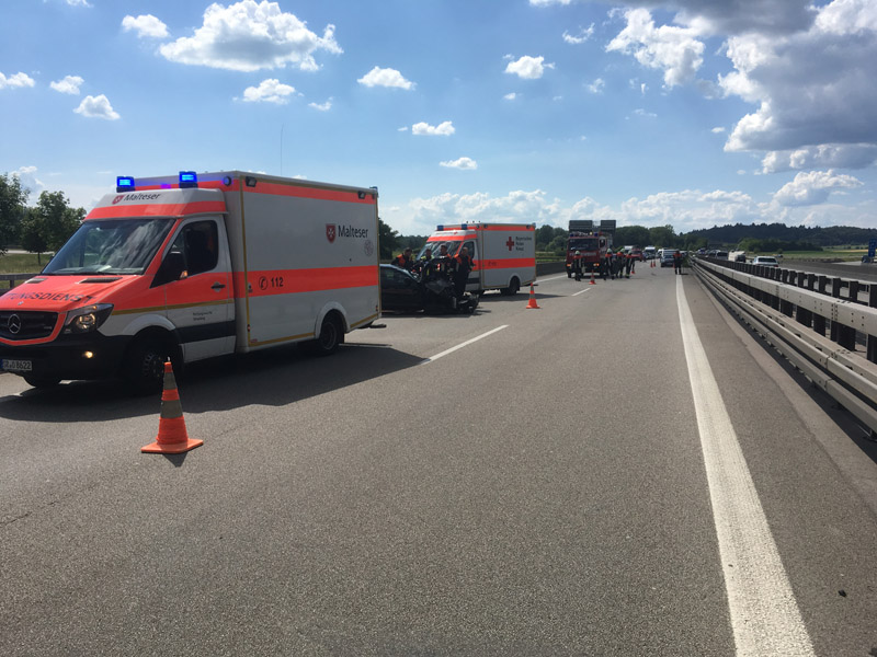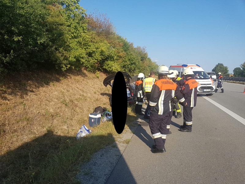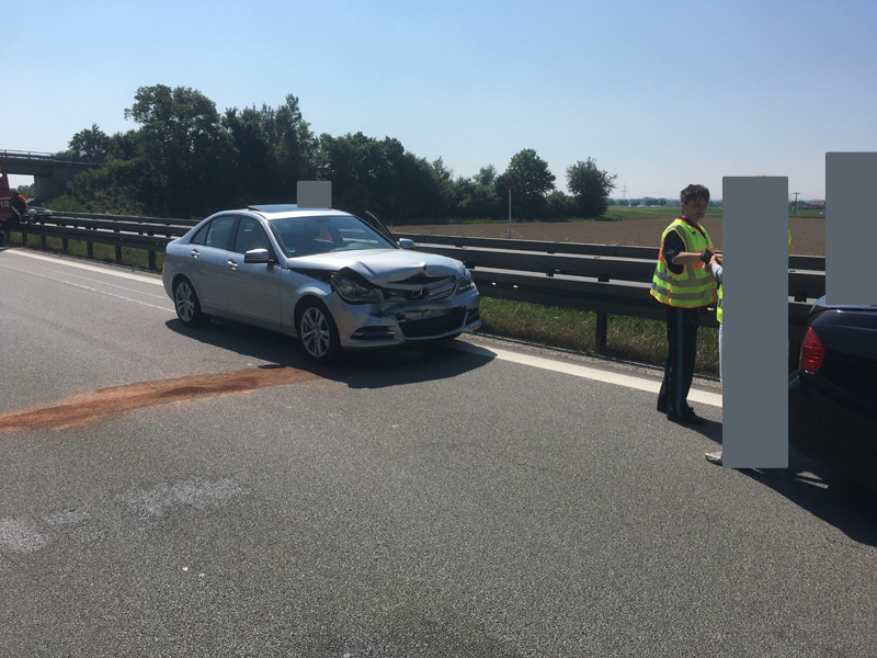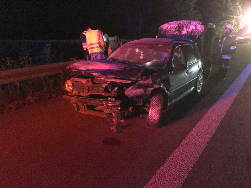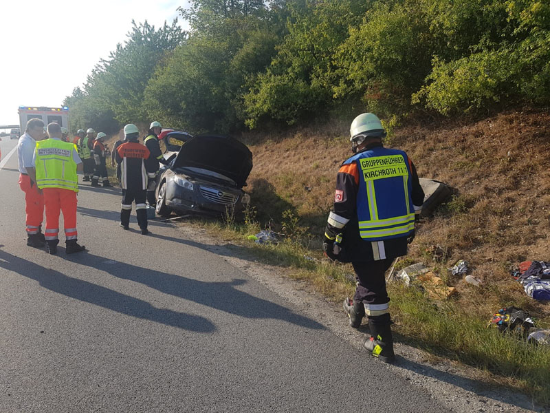 22.08.2018, Alarmierung: 17:26 Uhr VU, A3 Kirchroth - Wörth Die Feuerwehr Kirchroth wurde zu einem Verkehrsunfall auf die Autobahn gerufen. Dort war ein PKW von der Fahrbahn abgekommen. Die vier Insassen des PKW, darunter auch eine schwangere Frau, wurde glücklicherweise nur leicht verletzt und vom Rettungsdienst versorgt.