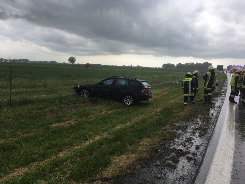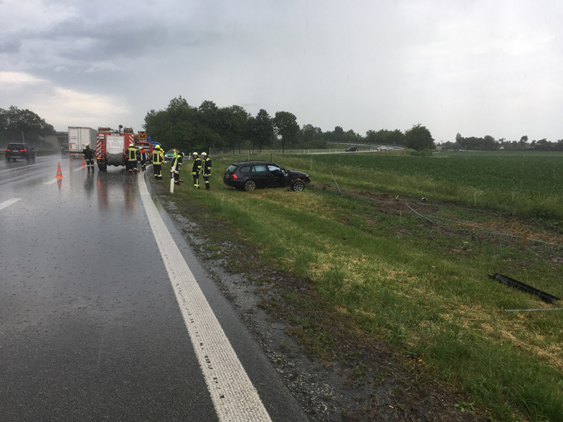 16:02 Uhr Verkehrsunfall, A3 Wörth - Kirchroth Die Feuerwehr Kirchroth wurde zu einem Verkehrsunfall im Bereich der Ein- Ausfahrt Kirchroth auf die A3 alarmiert. Die Einsatzstelle befand sich auf Höhe des Verzögerungsstreifens. Dort war ein PKW alleinbeteiligt von der regennassen Fahrbahn abgekommen und im Grünstreifen zum stehen gekommen. Die Unfallstelle wurde durch die Feuerwehr abgesichert, wozu der Schlauchwagen mit VSA jedoch zuerst nach Wörth fahren musste.