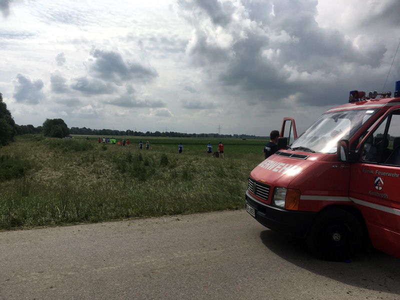 21:45 Uhr Personensuche, Wald bei Obermiethnach Die Feuerwehr Obermiethnach wurde zu einer Personensuche in ein Waldstück bei Obermiethnach alarmiert. Dort wurde das Fahrrad eines älteren Herren gefunden, der seit einigen Stunden von zu Hause abgängig war. Zur weiteren Unterstützung wurde die FF Kirchroth telefonisch von KBR Uttendorfer mit der Wärmebildkamera angefordert. Neben den Feuerwehren war auch der Rettungsdienst, die Rettungshundestaffel, die Bergwacht und die Polizei vor Ort. Letztere suchte auch mittels eines Hubschraubers aus der Luft. Der Vermisste wurde letztlich durch eine Fußstreife der FF Obermiethnach tief im Wald gefunden, zum Glück ansprechbar, jedoch ist er gestolpert und hat sich dabei verletzt, sodass er nicht mehr aufstehen konnte. Er wurde vor Ort medizinisch erstversorgt und dann mit dem BMW X3 von KBR Uttendorfer zu einer mit normalen Fahrzeugen zugänglichen Stelle gebracht, wo er in den Allrad-Rettungswagen der Unterstützungsgruppe Rettungsdienst Kirchroth umgeladen wurde. Diese hat ihn dann mit Notarztbegleitung in ein Krankenhaus gebracht. Dass der Vermisste an dieser Stelle tatsächlich gefunden wurde, grenzt auf jeden Fall an ein Wunder. Schutzengel hatte er zumindest jede Menge mit auf seinem Weg.