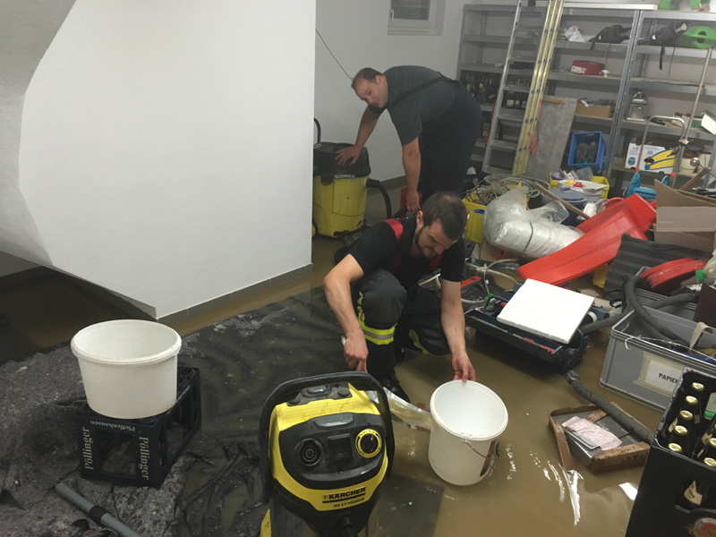 22:30 Uhr Keller unter Wasser, Kirchroth, Erlenstr. Nach dem Einsatz auf der Autobahn ereilte uns noch ein telefonisches Hilfeersuchen eines Kameraden. Bei diesem war durch den Starkregen Wasser in den Keller eingedrungen. Wir unterstützten ihn mit unserem Wassersauer und halfen, den Keller auszuräumen.