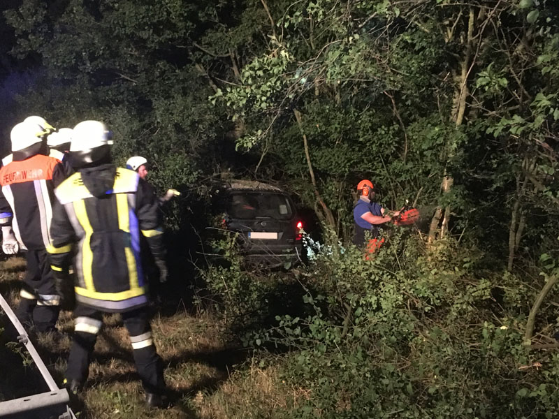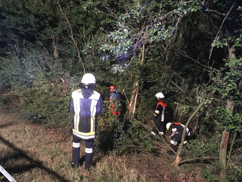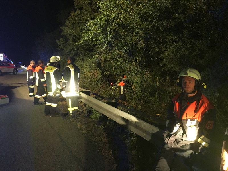 06.08.2018, Alarmierung: 03:10 Uhr VU, A3 Kirchroth - Steinach Wir wurden zu einem Unfall auf die Autobahn alarmiert. Dort war ein PKW aus unbekannter Ursache nach rechts von der Fahrbahn abgekommen und in der Böschung in den Büschen stehen geblieben. Alle Insassen konnten sich selbst aus dem Fahrzeug befreien und wurden lediglich leicht verletzt. Aufgabe der Feuerwehr war die Verkehrsabsicherung, die Ausleuchtung der Einsatzstelle sowie das entfernen der Büsche, um an das Fahrzeug heran zu kommen.