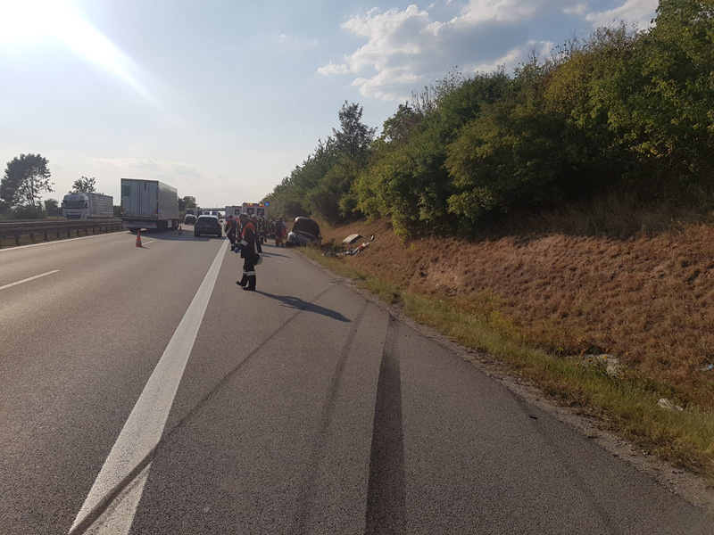 06.08.2018, Alarmierung: 14:24 Uhr tödlicher VU, A3 Wörth - Kirchroth Zur Unterstützung der Feuerwehr Wörth wurden wir zu einem Verkehrsunfall mit eingeklemmter Person auf die A3 zwischen Wörth und Kirchroth alarmier. Dort war ein Fahrzeug von der Fahrbahn abgekommen und hat sich im angrenzenden Feld überschlagen. Für einen der Insassen kam jede Hilfe zu spät, er verstarb noch im Unfallwrack. Zwei weitere Personen wurden schwer verletzt. Wir wurden auf der Anfahrt bereits durch die FF Wörth abbestellt und brauchten die Einsatzstelle nicht mehr anfahren.