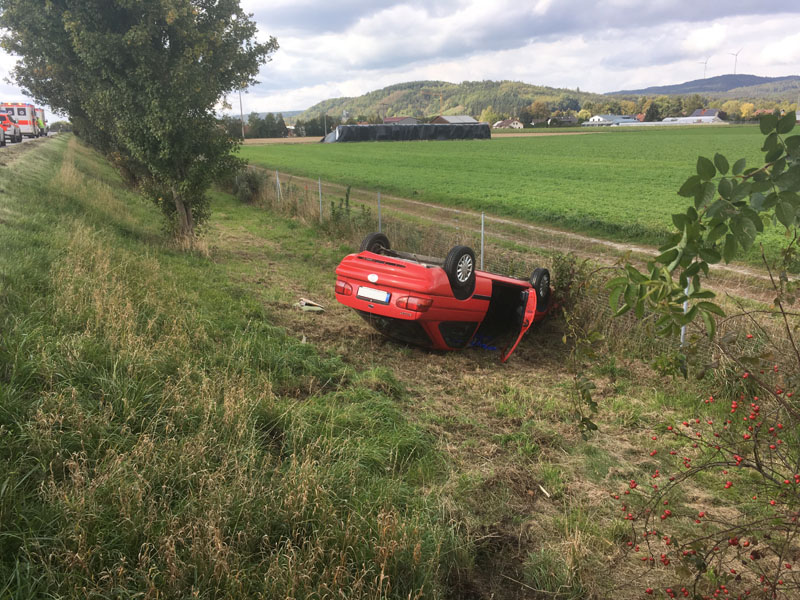 03.10.2018, Alarmierung: 13:36 Uhr VU, A3 Kirchroth - Wörth Die Feuerwehr Kirchroth wurde zu einem PKW Überschlag auf die A3 Richtung Wörth gerufen. Dort war ein PKW aus unbekannter Ursache zuerst in die Leitplanke gefahren und dann nach rechts von der Fahrbahn abgekommen, wo er sich überschlug. Die beiden Insassen konnten sich noch selbst aus dem Fahrzeug befreien und wurden vom Rettungsdienst in ein Krankenhaus eingeliefert.