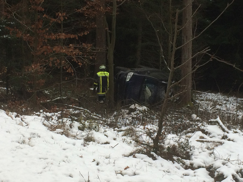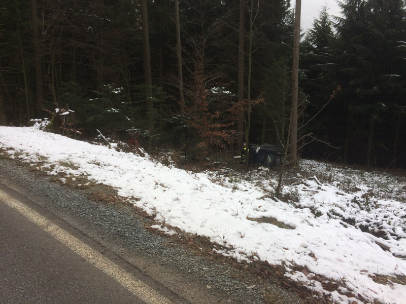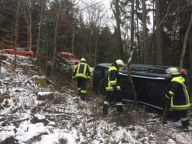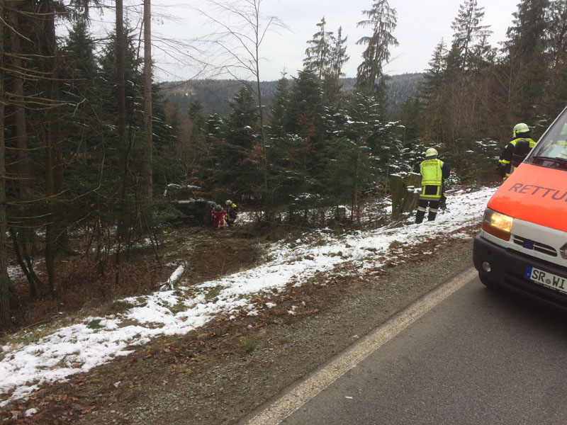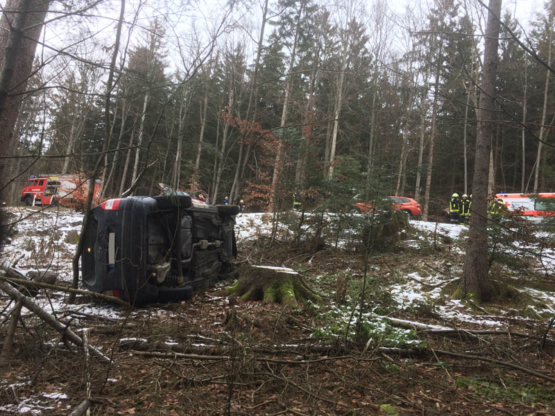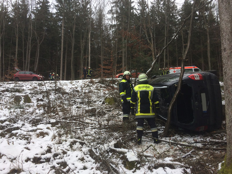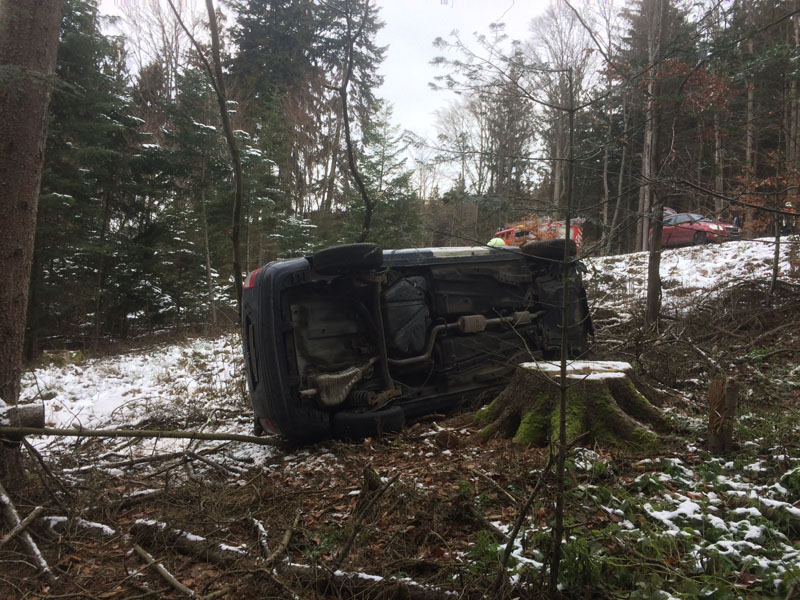 14.12.2018, Alarmierung: 11:48 Uhr VU, St 2148 Saulburg - Wiesenfelden Die Feuerwehr Kirchroth wurde gemeinsam mit den Wehren aus Saulburg und Wiesenfelden zu einem Unfall mit eingeklemmter Person auf die Staatsstraße zwischen Saulburg und Wiesenfelden alarmiert. Dort war einen PKW-Fahrerin aus unbekannter Ursache von der Fahrbahn abgekommen und eine Böschung hinunter gestürzt. Der PKW blieb auf der Seite liegen, die Fahrerin konnte sich selbst aus dem Wagen befreien und musste nicht durch die Feuerwehr gerettet werden. Die Straße wurde durch die Feuerwehren komplett gesperrt.